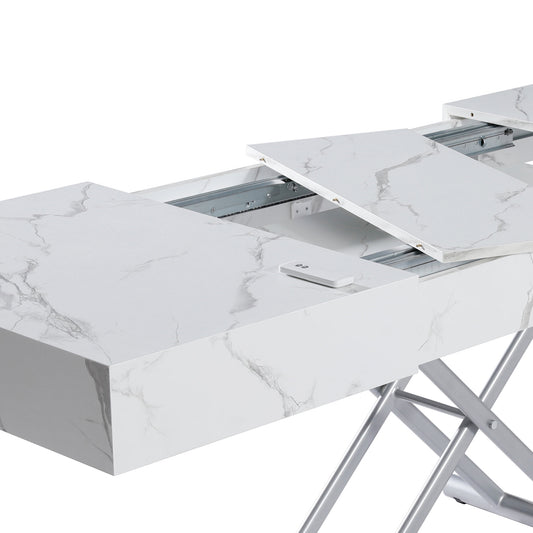 What starts as a stunning modern coffee table transforms into an elegant dining table that seats up to 12 people. Underneath the legs are hidden and lockable wheels to make moving and extending the table seamless. It is the perfect extendable coffee table for small spaces and hosting large dinners for 8, 10, and 12 people.