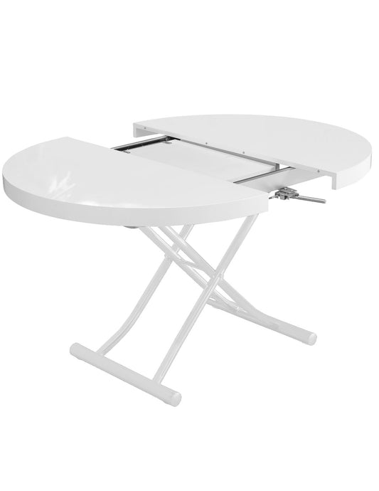 The extension pieces store neatly in the frame and begin to appear as you begin lifting the table and expanding it. By having them lift through the frame, you free up storage in your home for clothing, decor, and anything else. The flexibility makes it perfect for all rooms including game and living rooms, apartments and lofts, sitting rooms, and for holiday entertaining as you get multiple table level configurations so guests can sit and eat, or rest cups and plates with ease.