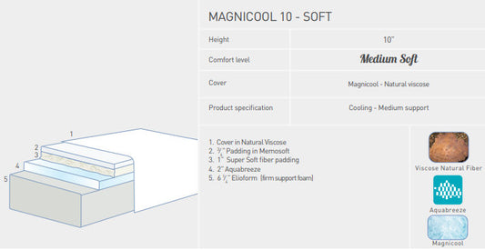 • Magniflex – The medium soft cushioning feels like resting on a cloud, and you’ll keep cool as you drift to sleep on this 10 inch memory foam mattress with its cooling gel topper made from Magnicool technology.