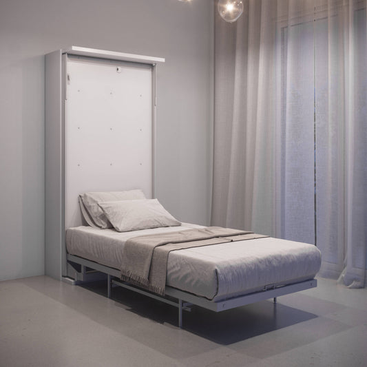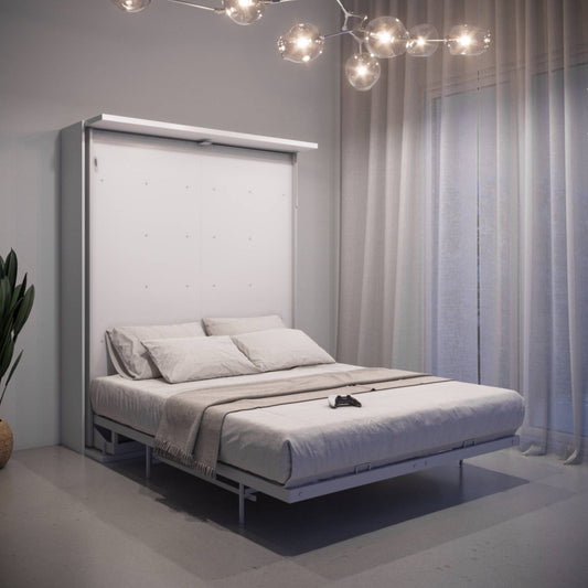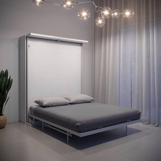 Hover is one of our original vertical lowering designs that fits in smaller spaces or along shorter walls coming in at 66.5 inches or 169 centimeters. Its sleek cabinet stays out of the way to maximize space during the day and lowers effortlessly for a good night sleep at night. This makes it perfect for tiny apartments and home offices.