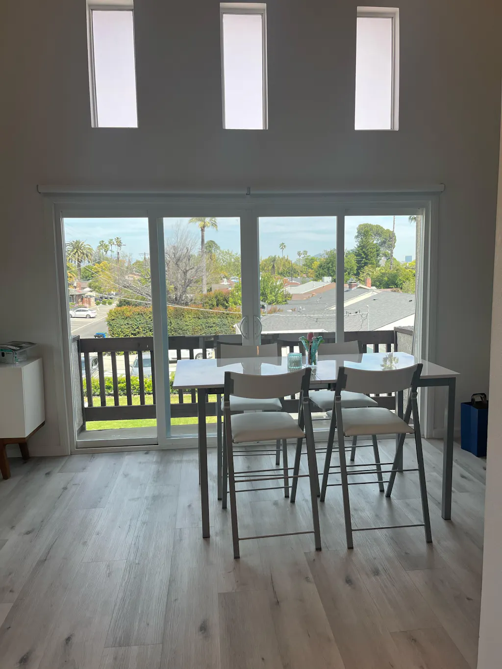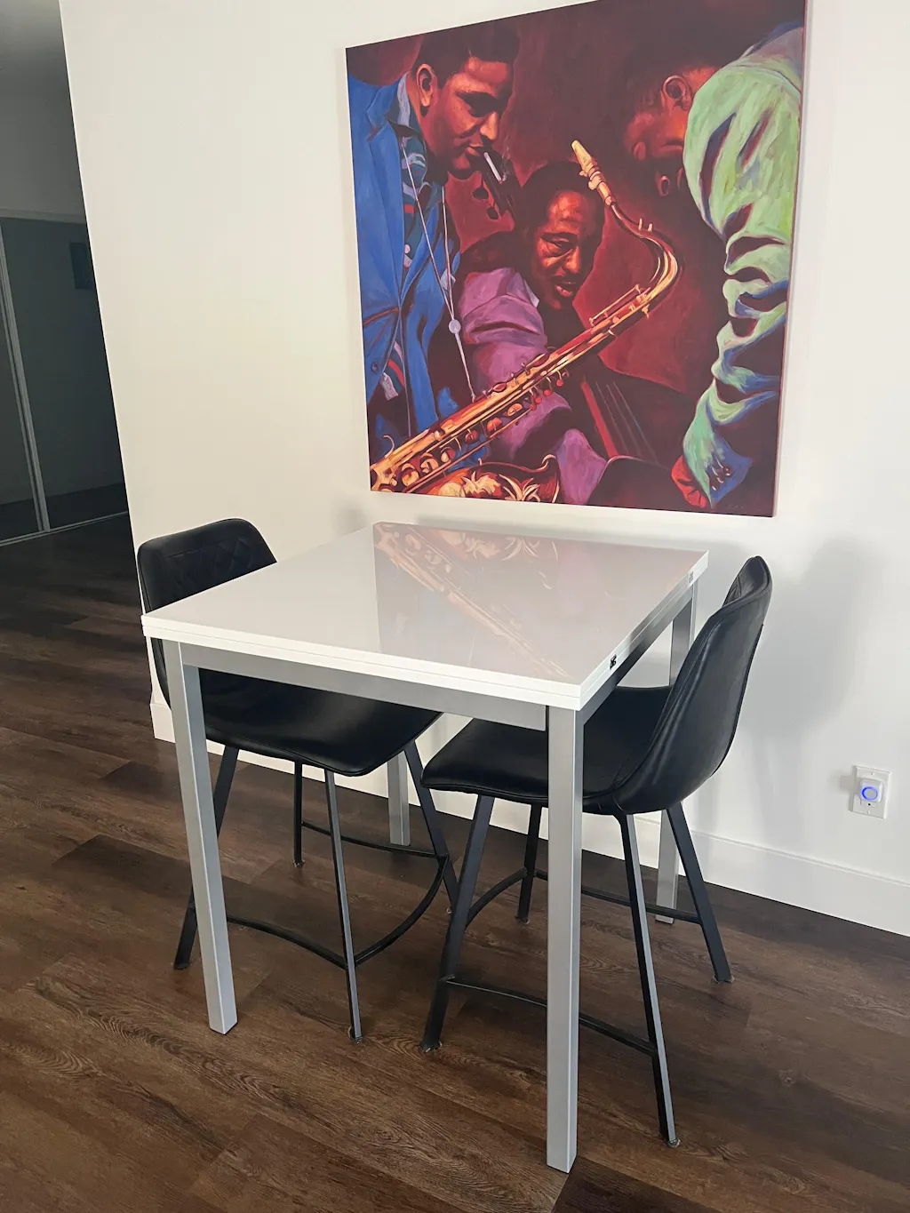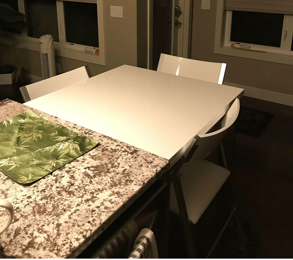 The Echo Counter Height Transforming Table measures 31 inches in width and in its full open state it measures 62 inches. Accommodating 2 to 8 guests depending on your setting or needs.