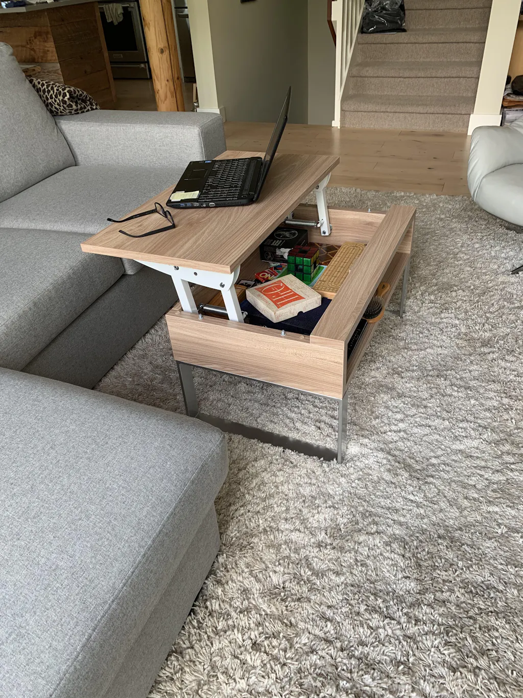 As a coffee table it can support quite a heavy weight but when the top is lifted and extended it will carry less weight. This extended weight load is great for working on your laptop or eating a meal but it is not intended to hold heavy items when extended.