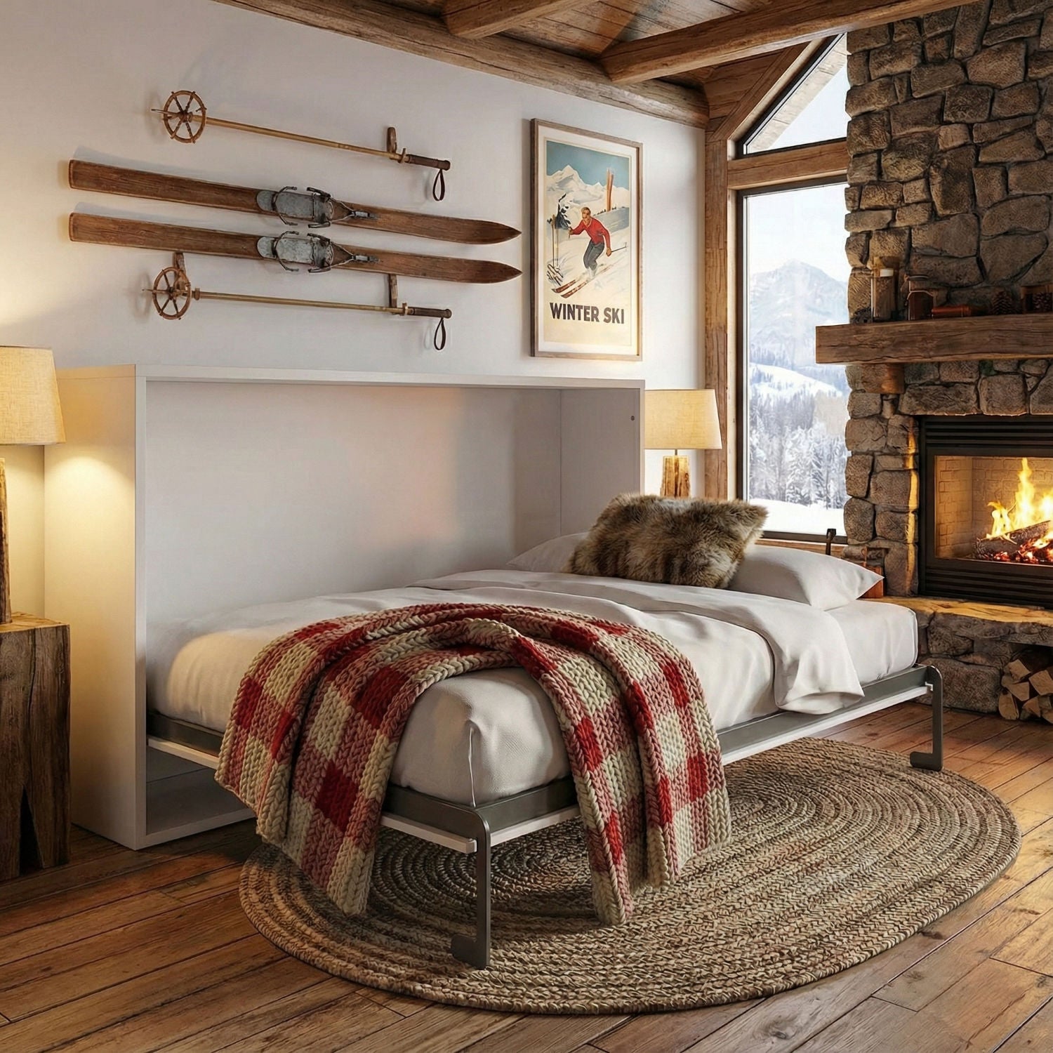 This horizontal twin sized murphy bed design is efficient for space saving in a small room.