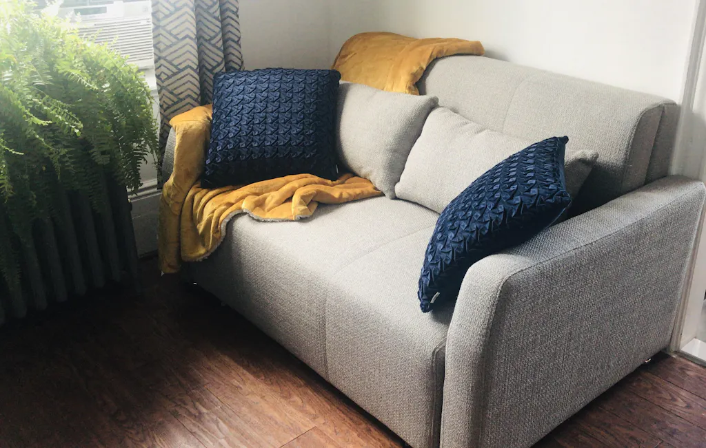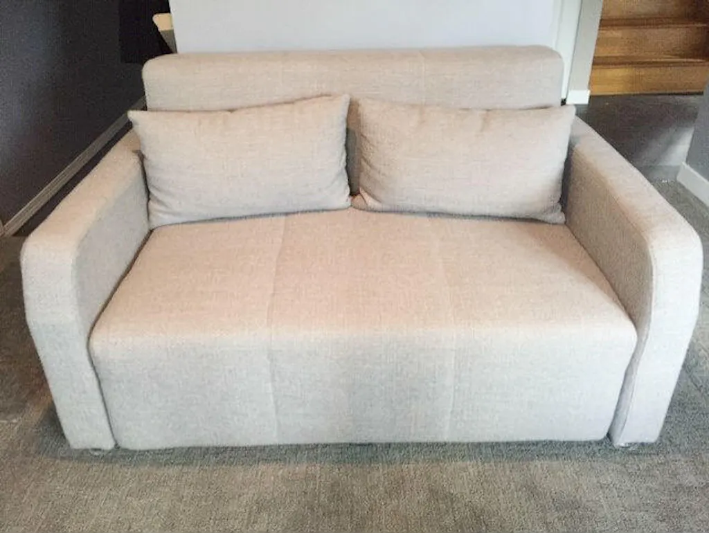 It is also possible to remove the fabric and hand wash it. Smooth rounded arms and seat make this sofa cozy looking and fits into both traditional and contemporary spaces. Well made and functional. Update your space and invite guests to sleep over, can even be used as a day-bed for lounging and watching movies. Need a larger sofa bed size? Check out the Harmony Queen or King.